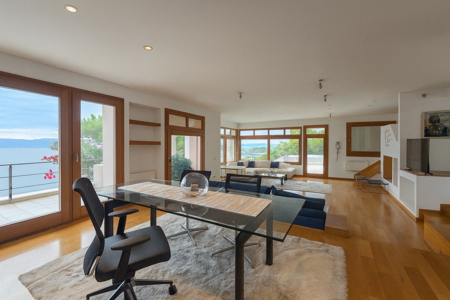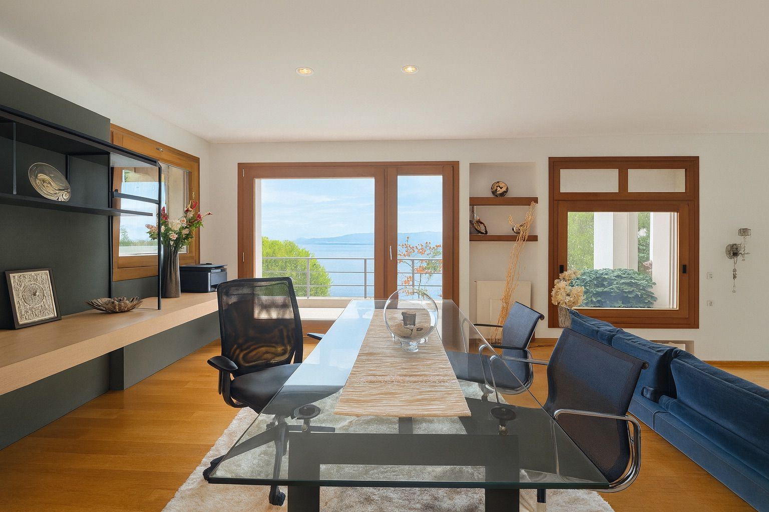 Σε απόσταση λίγων βημάτων από τα γαλαζοπράσινα νερά του Σχινιάς, αυτή η πλήρως επιπλωμένη έπαυλη πέντε υπνοδωματίων αποτελεί ένα σπάνιο ακίνητο υψηλών προδιαγραφών κατά μήκος της φημισμένης Αθηναϊκής Ριβιέρας. Με 844 τ.μ. δομημένης επιφάνειας σε οικόπεδο 1.060 τ.μ., η τριώροφη κατοικία σχεδιάστηκε ώστε κάθε ανατολή πάνω από το Αιγαίο να γίνεται μοναδική εμπειρία.